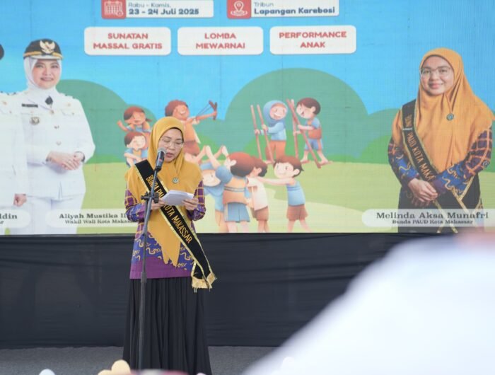 Bunda PAUD Kota Makassar, Melinda Aksa Mahmud, menyampaikan bahwa peringatan Hari Anak Nasional bukan hanya seremoni tahunan, melainkan pengingat bagi seluruh elemen masyarakat untuk menciptakan lingkungan yang aman, sehat, dan menyenangkan bagi anak-anak.