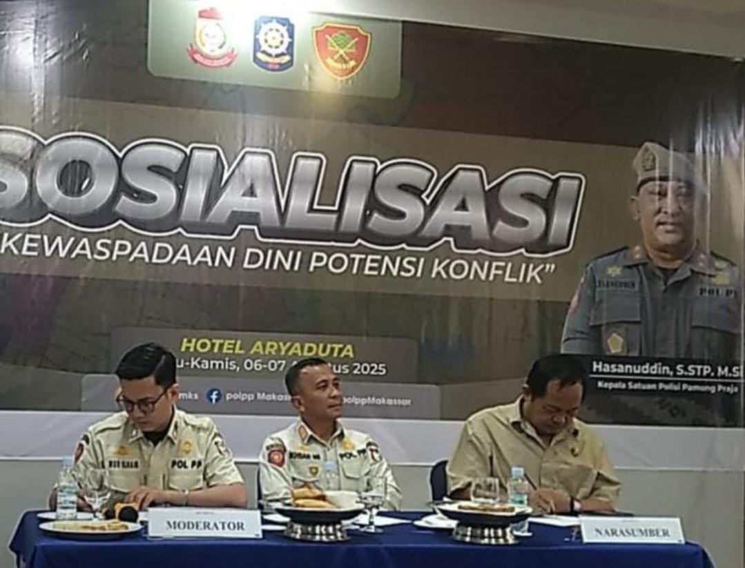 MENITNEWS.COM, MAKASSAR — Satuan Polisi Pamong Praja (Satpol PP) Kota Makassar, kembali menunjukkan komitmennya dalam menjaga ketertiban dan keamanan wilayah. Pada Kamis, 7 Agustus 2025, Satpol PP Kota Makassar menyelenggarakan hari kedua sosialisasi bertema “Kewaspadaan Dini Potensi Konflik” di Hotel Aryaduta Jalan Somba Opu, Makassar.