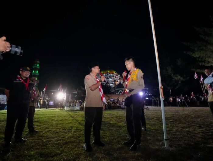 MENITNEWS.COM, MAKASSAR –- Gubernur Sulawesi Selatan Andi Sudirman Sulaiman turut membersamai ribuan anggota Pramuka gugus depan tingkat penegak SMA/SMK se-Sulsel dalam kegiatan Perkemahan Pendidikan Karakter yang digelar di kawasan Center Point of Indonesia (CPI), Makassar, Kamis (14/8/2025) malam.