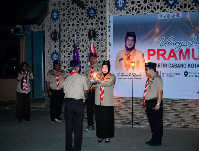 MENITNEWS.COM, MAKASSAR — Dua hari setelah menerima Lencana Melati dari Kwartir Nasional (Kwarnas) Gerakan Pramuka di Cibubur, Jakarta Timur, Wakil Gubernur Sulawesi Selatan, yang juga Ketua Kwartir Cabang (Kwarcab) Kota Makassar, Fatmawati Rusdi, memimpin Upacara Ulang Janji Pramuka di Halaman Kantor Sekretariat Kwarcab Kota Makassar, Jumat malam, 15 Agustus 2025.