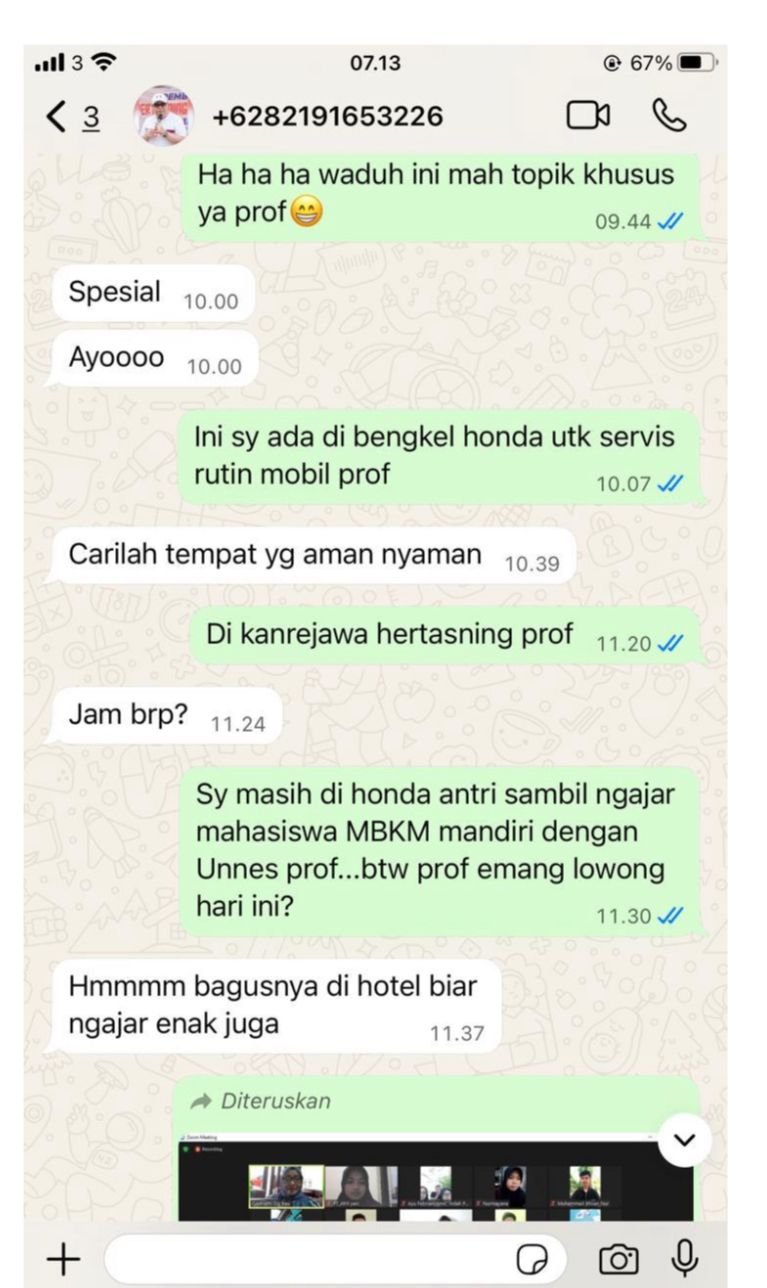 Ia dilaporkan oleh seorang Dosen perempuan, yang mengaku dilecehkan melalui percakapan WhatsApp hingga kerap diajak ke hotel.