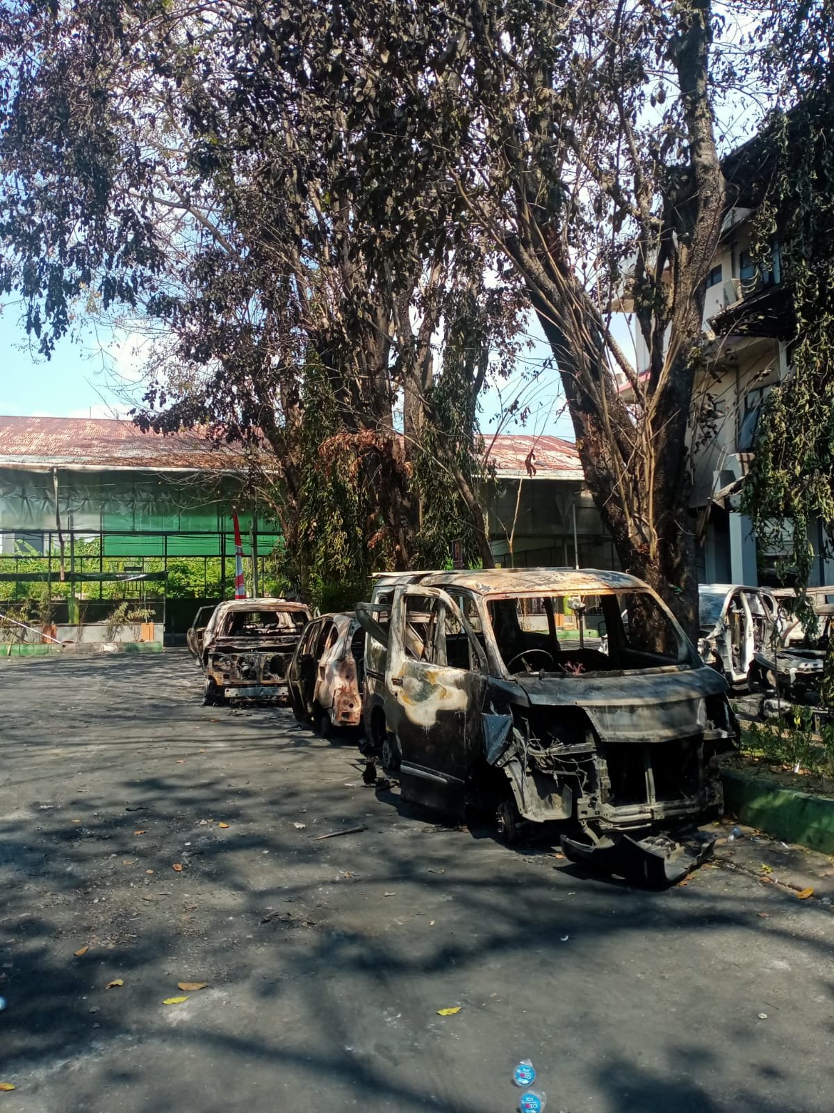 Kerugian Kendaraan Roda Empat: Sebanyak 67 unit mobil yang terparkir di area kantor diperkirakan rusak total. Dengan taksiran harga rata-rata Rp200 juta per unit, kerugian dari sektor ini mencapai Rp13,4 miliar.