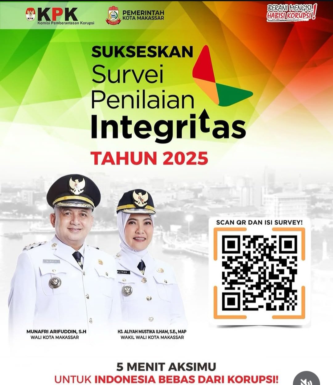 Dengan tagline “5 Menit Aksimu Untuk Indonesia Bebas dari Korupsi!”, Pemkot Makassar menekankan bahwa setiap kontribusi, sekecil apa pun, memiliki dampak besar dalam perbaikan sistem birokrasi dan pelayanan publik.