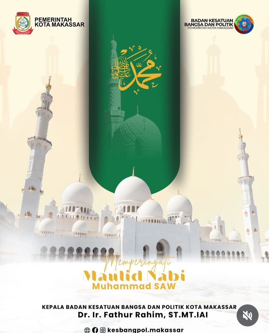 MENITNEWS.COM, MAKASSAR — Kepala Badan Kesatuan Bangsa dan Politik (Kesbangpol) Kota Makassar, Dr. Ir. Fathur Rahim, ST., MT., IAI, menyampaikan ucapan selamat memperingati Maulid Nabi Muhammad SAW 1447 Hijriah. Peringatan Maulid Nabi tahun ini jatuh pada Jumat, 5 September 2025.