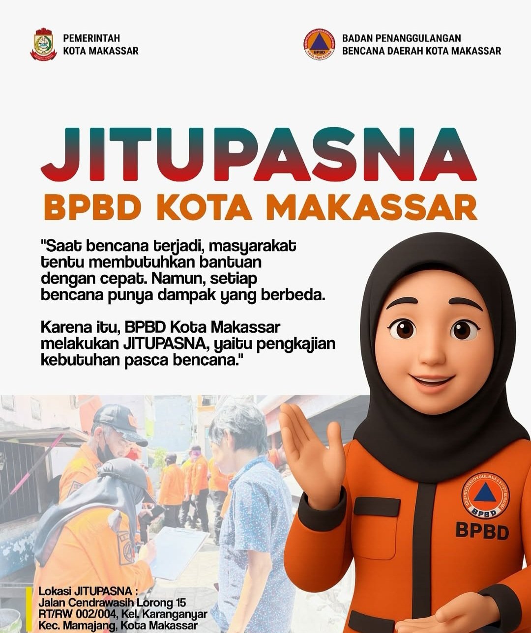 BPBD Kota Makassar memperkenalkan JITU-PASNA, yaitu Kajian Kebutuhan Pasca Bencana.