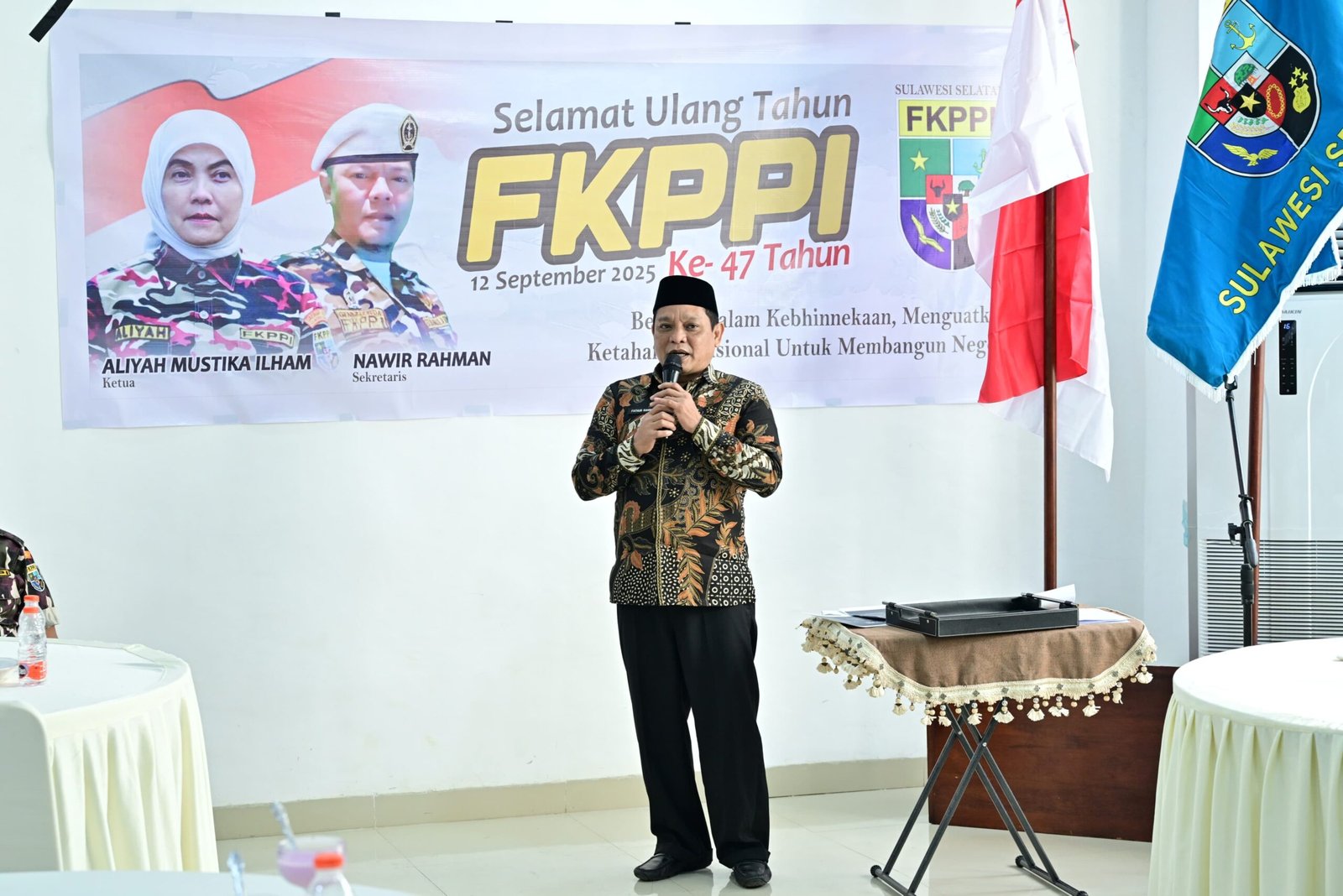 MENITNEWS.COM, MAKASSAR — Kepala Badan (Kaban) Kesatuan Bangsa dan Politik (Kesbangpol) Kota Makassar, Dr. Ir. Fathur Rahim, ST., MT., IAI, mendampingi Wakil Wali Kota sekaligus Ketua FKPPI Sulawesi Selatan, Aliyah Mustika Ilham, menghadiri acara peringatan HUT ke-47 Forum Komunikasi Putra Putri Purnawirawan TNI-Polri (FKPPI) yang digelar di Rumah Jabatan Wakil Wali Kota, Jumat (12/9/2025).