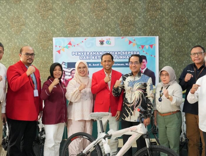 MENITNEWS.COM, MAKASSAR — Rektor Universitas Hasanuddin (Unhas), Prof. Dr. Ir. Jamaluddin Jompa, M.Sc (Prof. JJ), meneruskan bantuan sepeda dari Ketua Ikatan Alumni (IKA) yang juga Menteri Pertanian RI, Amran Sulaiman, kepada Sivitas Akademika Unhas. Kegiatan berlangsung di Fakultas Farmasi, Kampus Unhas Tamalanrea, Makasssar, Kamis (25/9/2025).