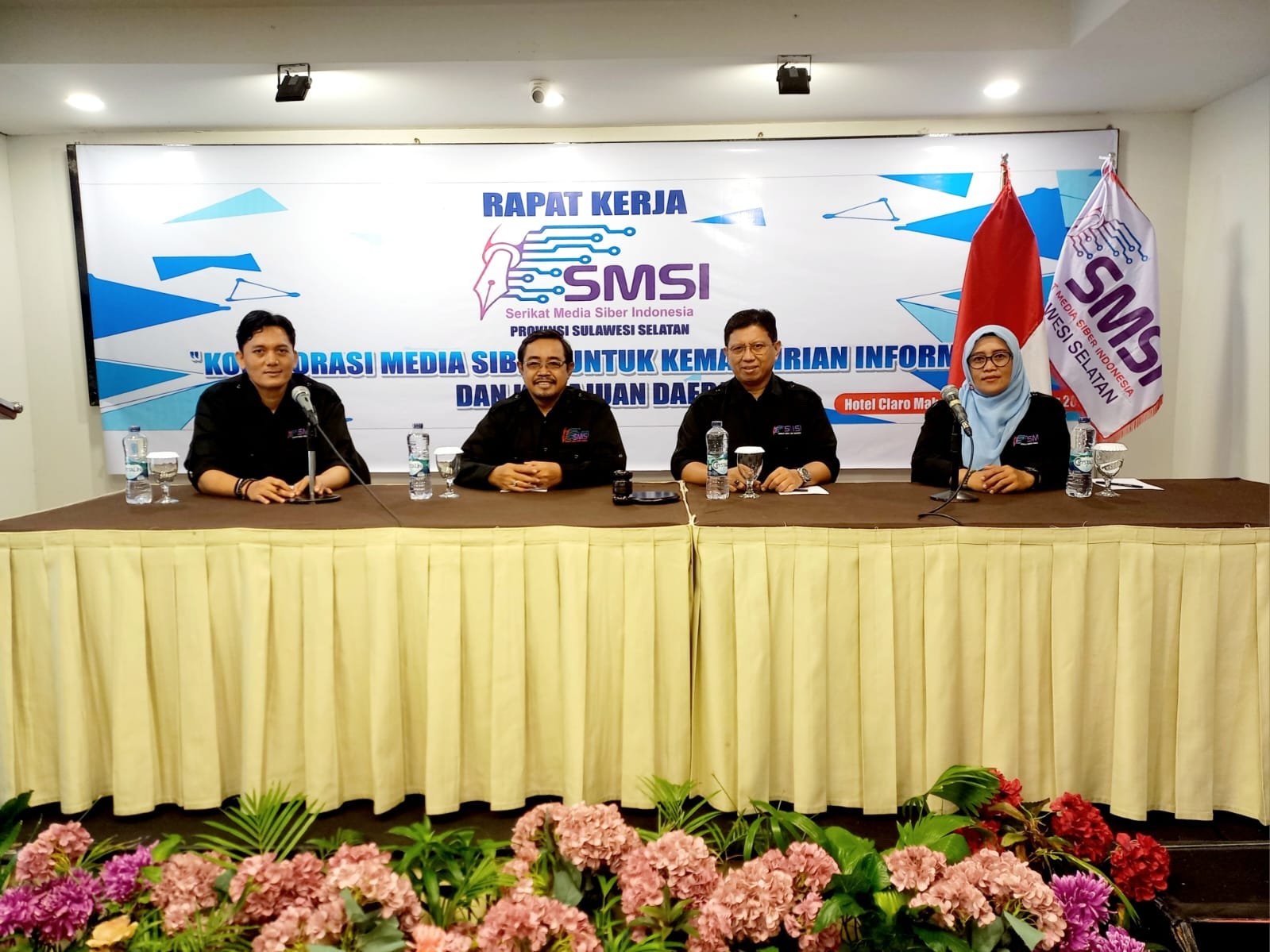 Dalam Raker perdana SMSI Sulsel di Claro Hotel, hadir lengkap seluruh pengurus yang sudah dilantik sepekan sebelumnya. Raker ini bertema “Kolaborasi Media Siber Untuk Kemandirian Informasi dan Kemajuan Daerah”. (*)