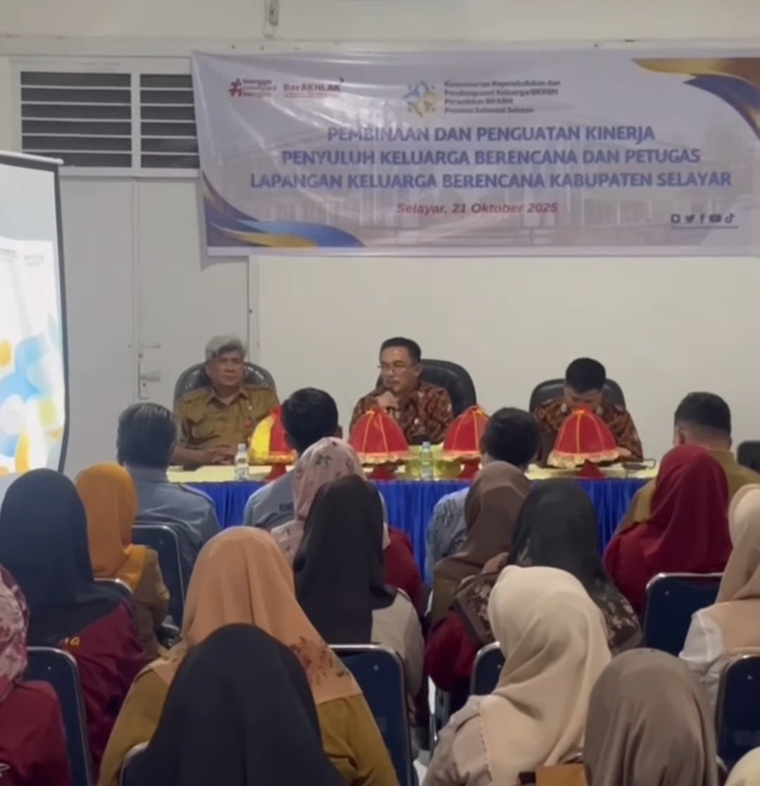 Gelar Penguatan Kinerja Penyuluh KB Kemendukbangga/BKKBN Perwakilan Provinsi Sulawesi Selatan (Sulsel), juga menggelar kegiatan pembinaan dan penguatan kinerja bagi 30 Penyuluh Keluarga Berencana (PKB) dan Petugas Lapangan Keluarga Berencana (PLKB) di Kabupaten Selayar. Acara ini berlangsung pada Selasa, 21 Oktober 2025.