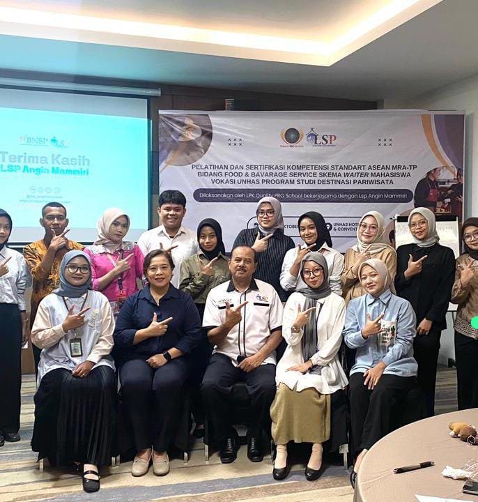 Kegiatan ini menandai sinergi yang kuat antara Dunia Pendidikan Vokasi, industri (melalui QPS dan Hotel UNHAS), dan Lembaga Sertifikasi Profesional, dalam upaya mencetak Sumber Daya Manusia (SDM) unggul yang siap menghadapi tantangan pasar kerja global. (*)