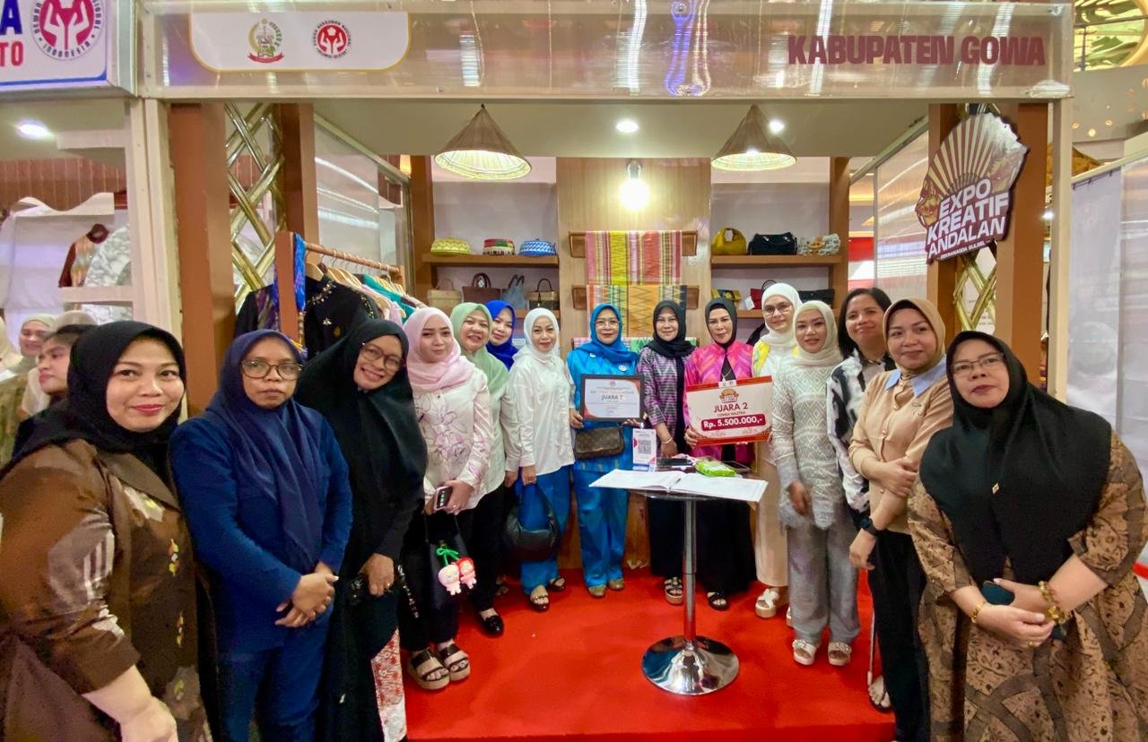 GOWA, MENITNEWS.COM– Wastra khas Gowa kembali mengharumkan nama daerah. Motif tradisional cura’ caddi berhasil meraih Juara 2 Kategori Produk Wastra pada ajang Expo Kreatif Andalan Dekranasda Sulsel 2025 yang berlangsung di Trans Studio Mall Makassar.