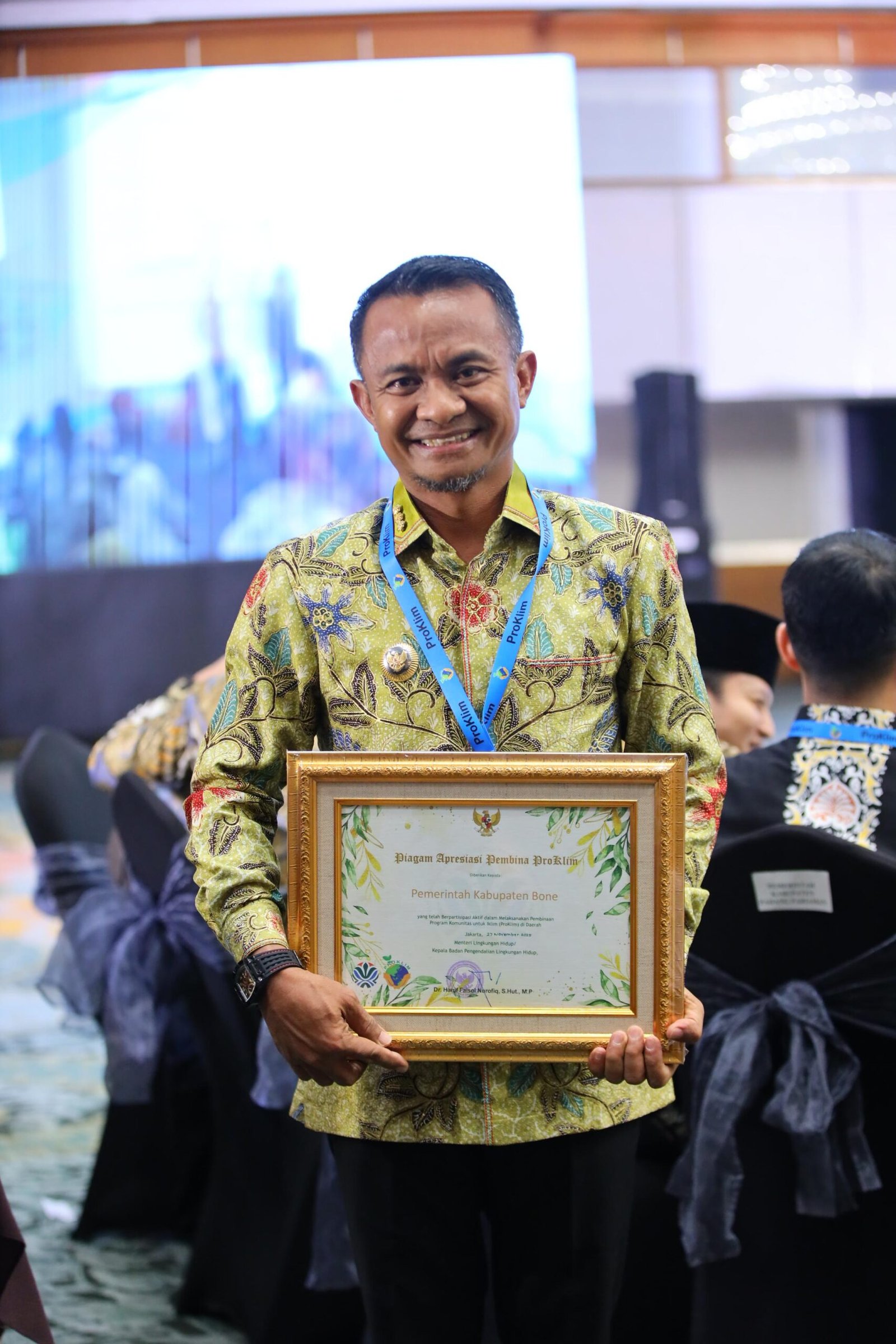 Penghargaan diserahkan langsung Menteri Lingkungan Hidup Hanif Faisol Nurofiq kepada Bupati Bone Andi Asman Sulaiman.