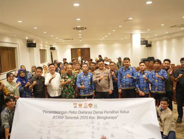 MENITNEWS.COM, MAKASSAR — Pemerintah Kecamatan Biringkanaya, berkolaborasi dengan unsur Forum Koordinasi Pimpinan Kecamatan (Forkopimcam), secara resmi menggelar Deklarasi Damai sebagai langkah strategis untuk menjamin kondusivitas selama pelaksanaan pemilihan Ketua Rukun Tetangga (RT) dan Rukun Warga (RW) di wilayah tersebut.