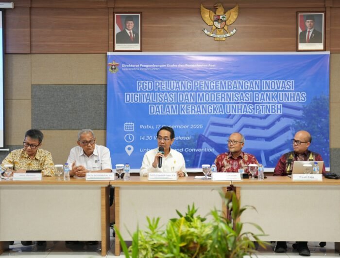 MAKASSAR, MENITNEWS.COM– Universitas Hasanuddin melalui Direktorat Pengembangan Usaha dan Pemanfaatan Aset menyelenggarakan Focus Group Discussion (FGD) bertajuk “Peluang Pengembangan Inovasi Digitalisasi dan Modernisasi Bank Unhas dalam Kerangka Unhas PTNBH”. Kegiatan ini bertujuan merumuskan arah penguatan Bank Unhas sebagai bagian dari upaya meningkatkan kapasitas dan kemandirian finansial universitas. FGD berlangsung mulai pukul 14.30 Wita di Unhas Hotel, Kampus Unhas Tamalanrea, Makassar, Rabu (17/12).