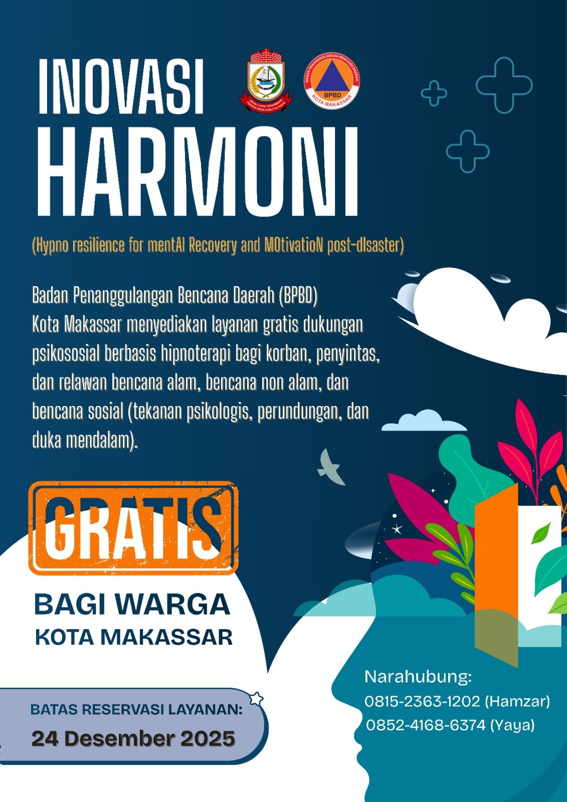 Inovasi HARMONI merupakan pengembangan dari program trauma healing yang telah berjalan di BPBD Kota Makassar. Program ini difokuskan pada pemulihan kesehatan mental masyarakat pascabencana dengan pendekatan terstruktur, terukur, dan berbasis kebutuhan psikologis individu.