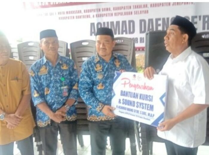 MENITNEWS.COM, TAKALAR — Fasilitas publik yang mumpuni kini hadir di Kantor Camat Sanrobone, Kabupaten Takalar. Menjawab keluhan terkait rusaknya fasilitas kantor, Anggota DPR RI Fraksi Partai NasDem, Achmad Daeng Se’re, secara resmi menyerahkan bantuan 100 kursi dan satu set sound system lengkap, pada Jumat (19/12/2025).