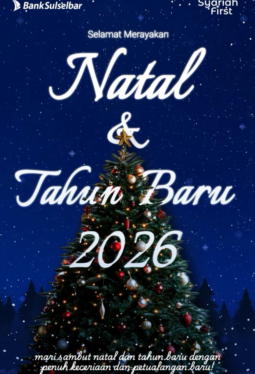 Tidak hanya merayakan Natal, Bank Sulselbar juga memberikan suntikan semangat untuk menghadapi tahun yang baru. Dengan visual pohon natal yang megah dan latar belakang salju yang estetik, bank kebanggaan Sulawesi Selatan dan Barat ini mengajak masyarakat untuk menyambut Tahun Baru 2026 dengan energi positif.