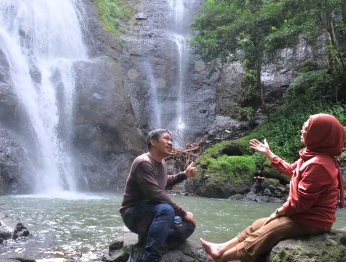 ”Perjalanan ke sini memang menguras tenaga. Namun semua rasa lelah itu terbayar lunas ketika sampai di lokasi. Air terjunnya menjulang indah di tengah alam hijau,” ungkap Husniah Talenrang.