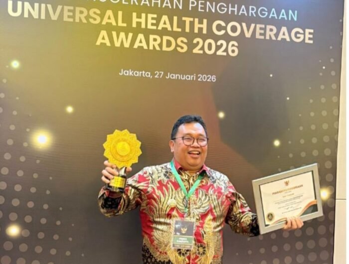Penghargaan tersebut diserahkan langsung dalam agenda nasional “Deklarasi dan Pencanangan UHC serta Pemberian Penghargaan Pemerintah Daerah Tahun 2026” yang berlangsung di Ballroom JIEXPO Kemayoran, Jakarta Pusat, Selasa (27/1/2026).