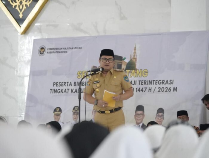 GOWA, MENITNEWS.COM – Wakil Bupati Gowa, Darmawangsyah Muin membuka Bimbingan Manasik Jamaah Calon Haji (JCH) Terintegrasi Tingkat Kabupaten Gowa Tahun 1447 H / 2026 M di Masjid Agung Syekh Yusuf, Senin (2/2).