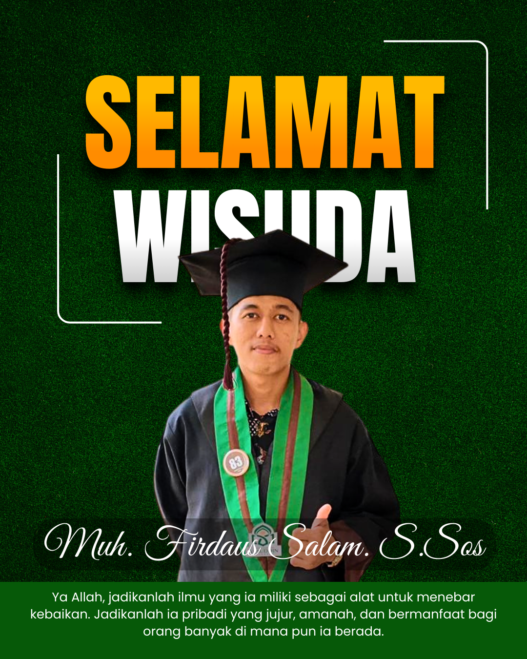 Selamat wisuda, Muh. Firdaus Salam! Perjalanan 5 tahunmu telah terbayar lunas hari ini. Kota Makassar, dan dunia di luar sana menanti baktimu selanjutnya. (Ewa)