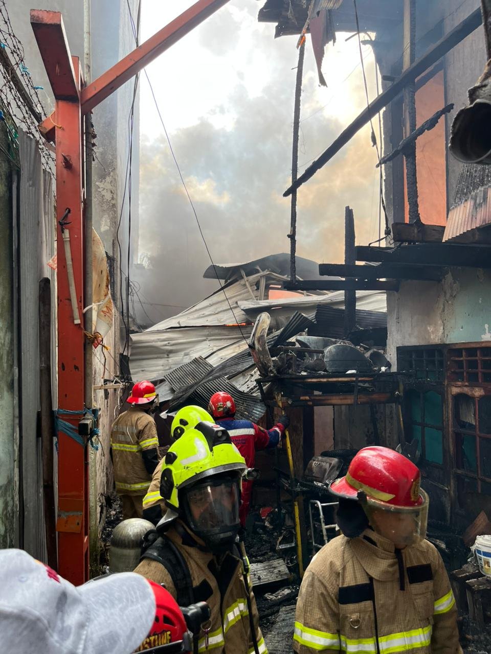 Kebakaran yang diduga dipicu oleh korsleting listrik ini muncul dari salah satu atap rumah warga dan dengan cepat merambat ke bangunan di sekitarnya.