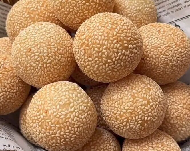 Suhu Minyak: Jangan memasukkan adonan saat minyak terlalu mendidih agar wijen tidak cepat rontok dan kulit tidak meletus.