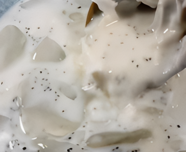 Persiapan: Siapkan wadah atau gelas saji. Masukkan serutan daging kelapa kopyor ke dalamnya.