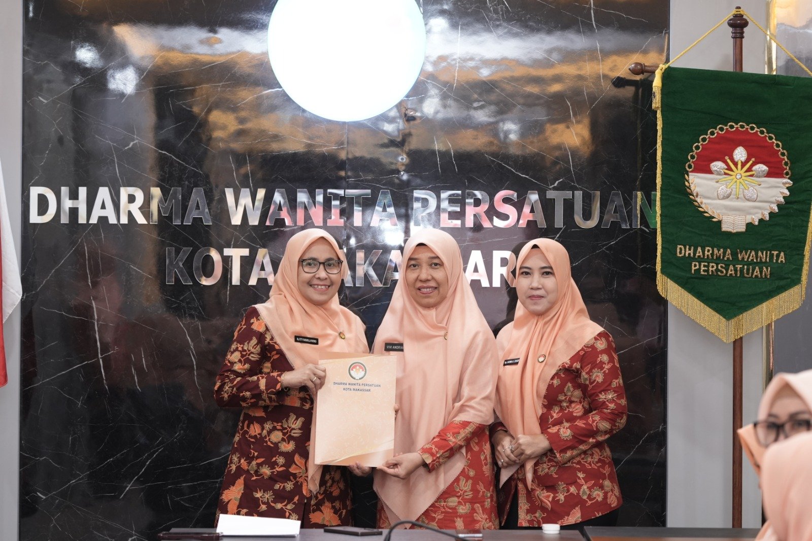 Kegiatan ini dihadiri jajaran pengurus DWP Kota Makassar serta para Ketua Unit Kerja yang menerima SK PAW. Prosesi berlangsung tertib dan khidmat, kemudian ditutup dengan sesi dokumentasi bersama.