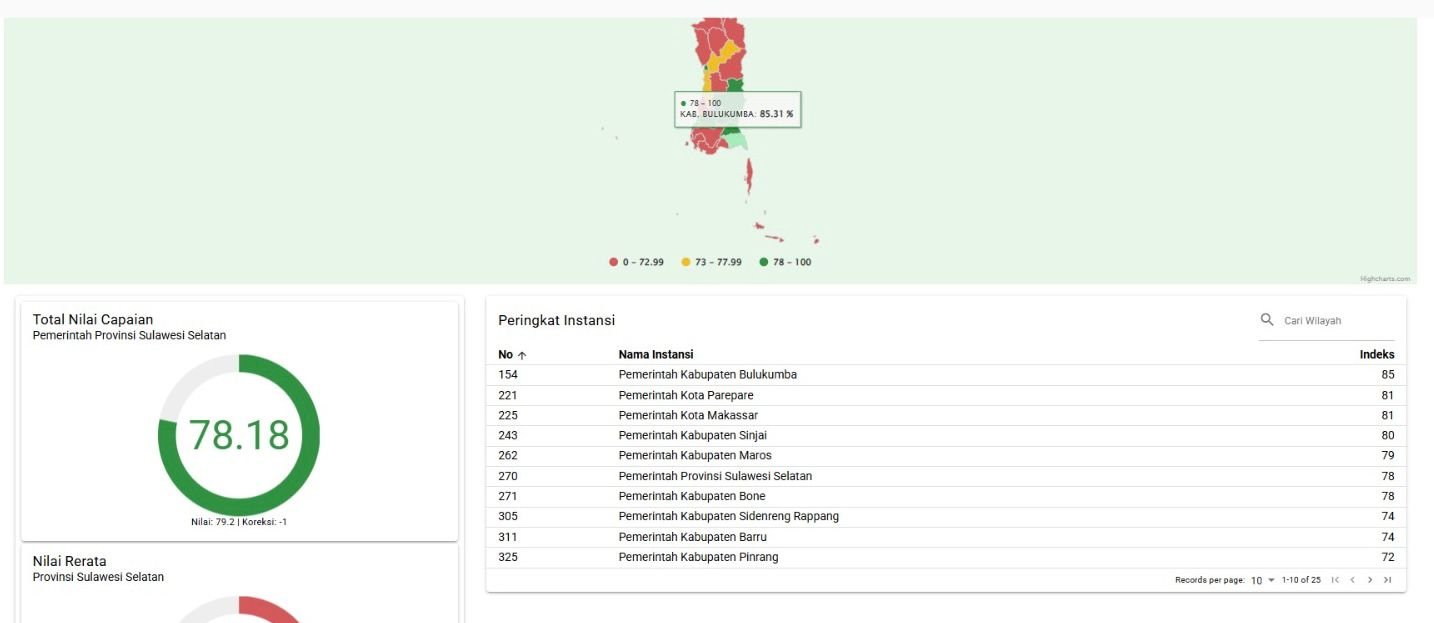 Bulukumba berada di atas Kota Parepare dan Kota Makassar yang masing masing meraih indeks 81.
