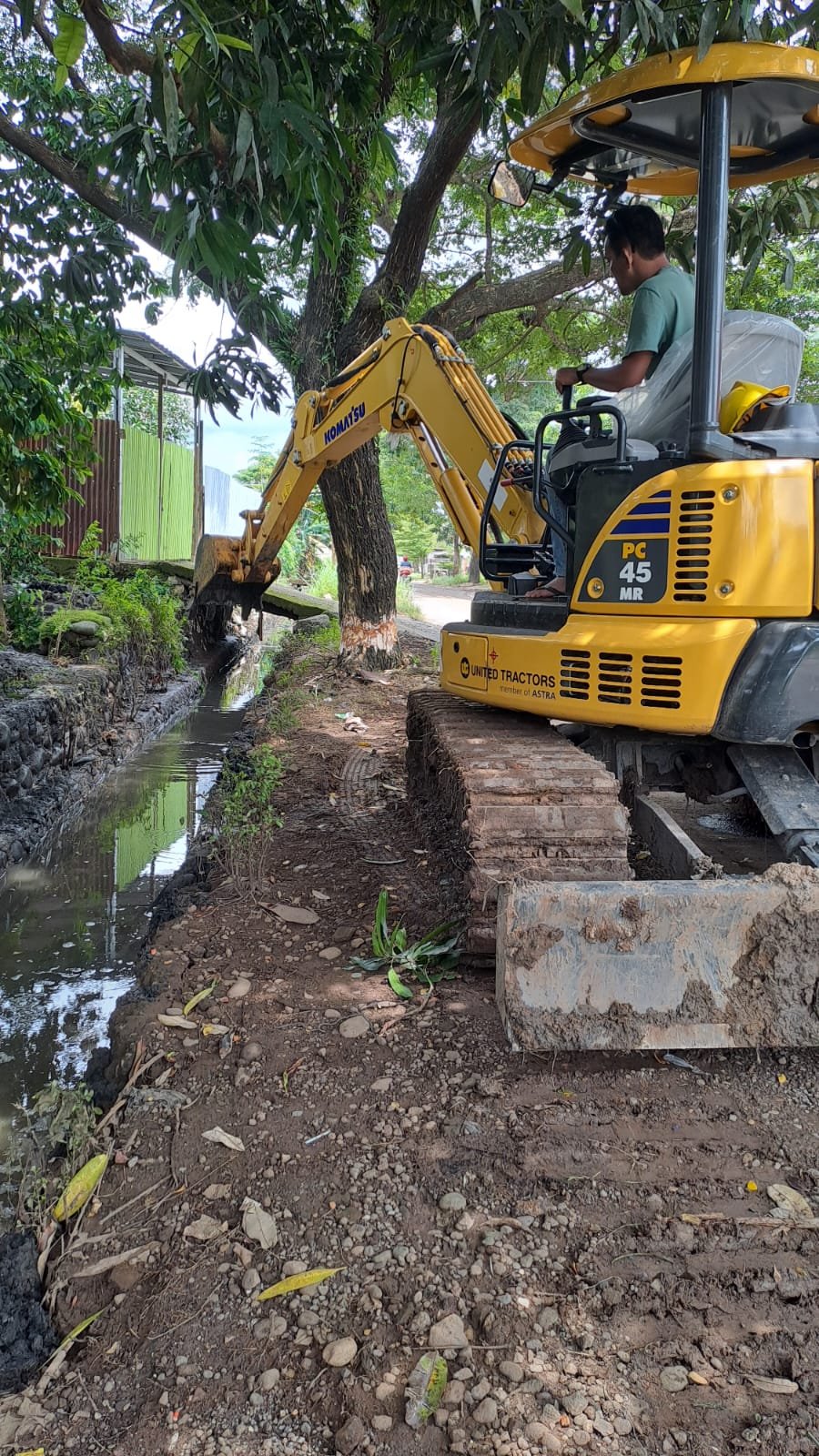 Kegiatan ini dilakukan dengan menggunakan alat berat berupa excavator PC berkapasitas 4,5 ton untuk mengangkat sedimentasi yang mengendap di dasar saluran.