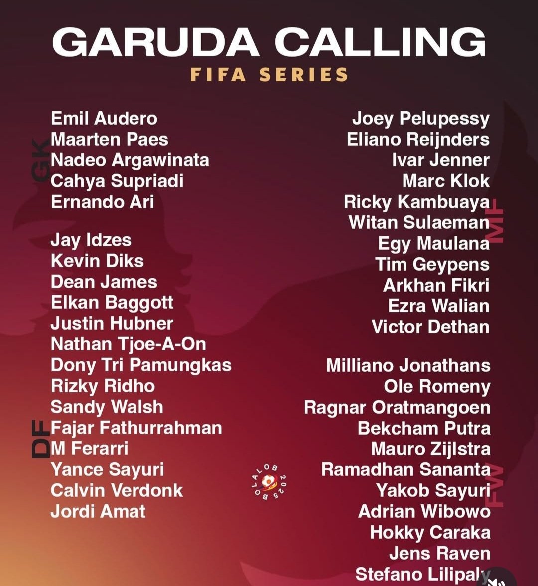 Dalam daftar sementara tersebut, terdapat sejumlah nama familier seperti Emil Audero, Maarten Paes, Jay Idzes, Calvin Verdonk, Kevin Diks, Ole Romeny, hingga Nathan Tjoe-A-On.