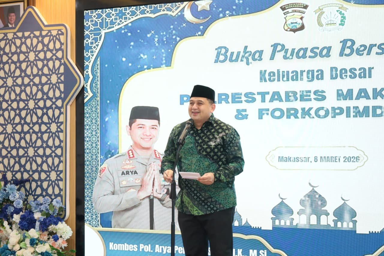 MENITNEWS.COM, MAKASSAR, — Wali Kota Makassar, Munafri Arifuddin, menghadiri kegiatan buka puasa bersama yang digelar Polrestabes Makassar di Aula Mappaodang, Minggu malam (7/3/2026).