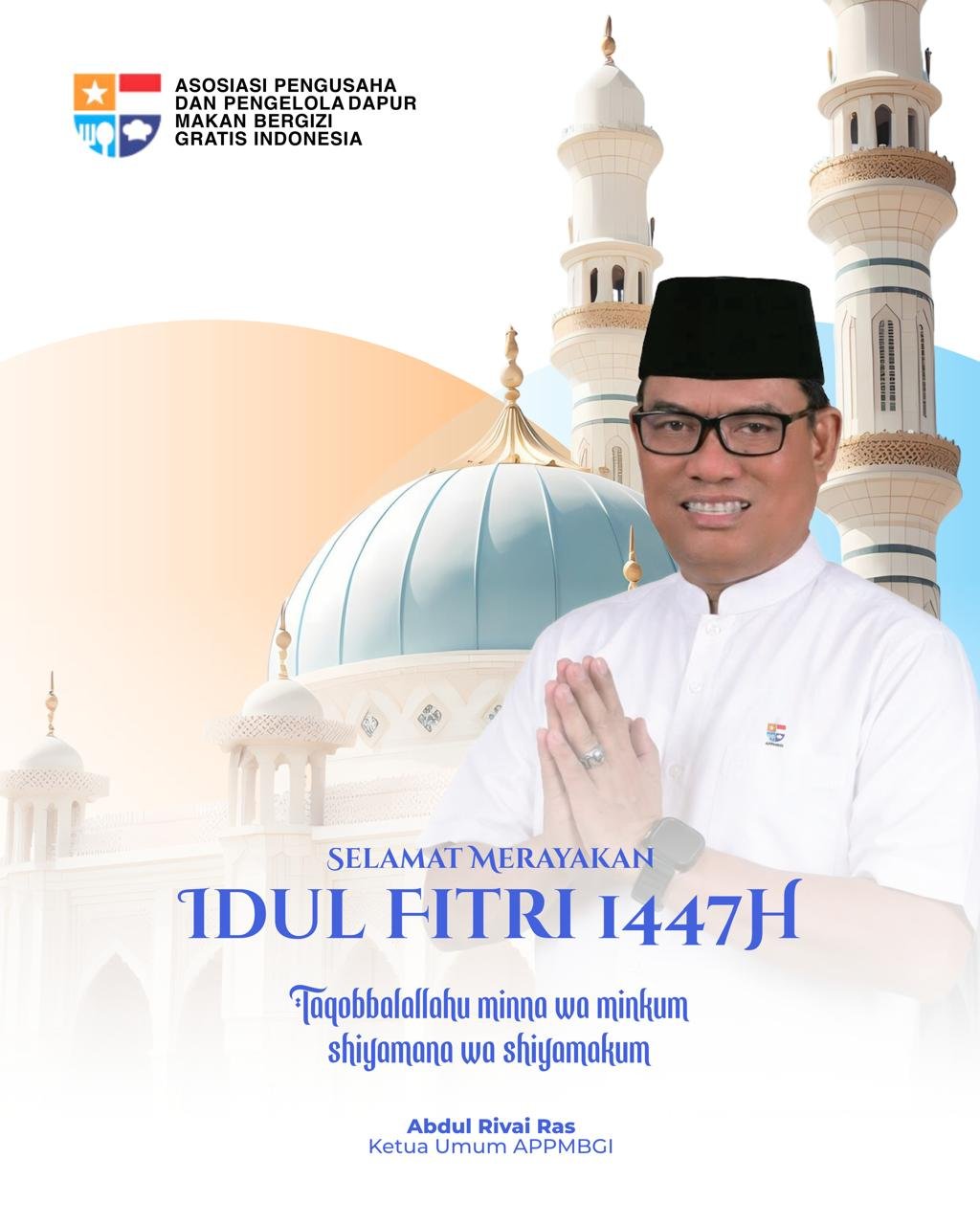 MENITNEWS.COM, JAKARTA — Menyambut hari kemenangan Idulfitri 1447 Hijriah, Ketua Umum Asosiasi Pengusaha dan Pengelola Dapur Makan Bergizi Gratis Indonesia (APPMBGI), Abdul Rivai Ras, menyampaikan pesan hangat kepada seluruh masyarakat Indonesia.