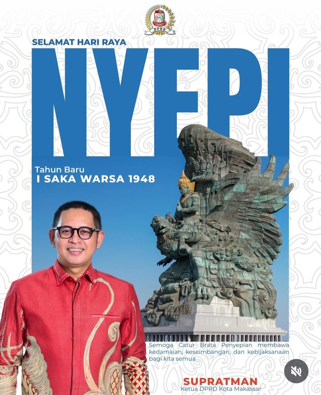 “Pimpinan dan Anggota DPRD Kota Makassar mengucapkan: Selamat Hari Raya Nyepi 2026. Tahun Baru Saka 1948,” tulis pada unggahan tersebut.
