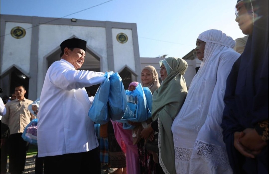 Tak hanya bersilaturahmi, Presiden Prabowo juga membagikan paket sembako, sebagai bentuk kepedulian nyata di hari kemenangan.