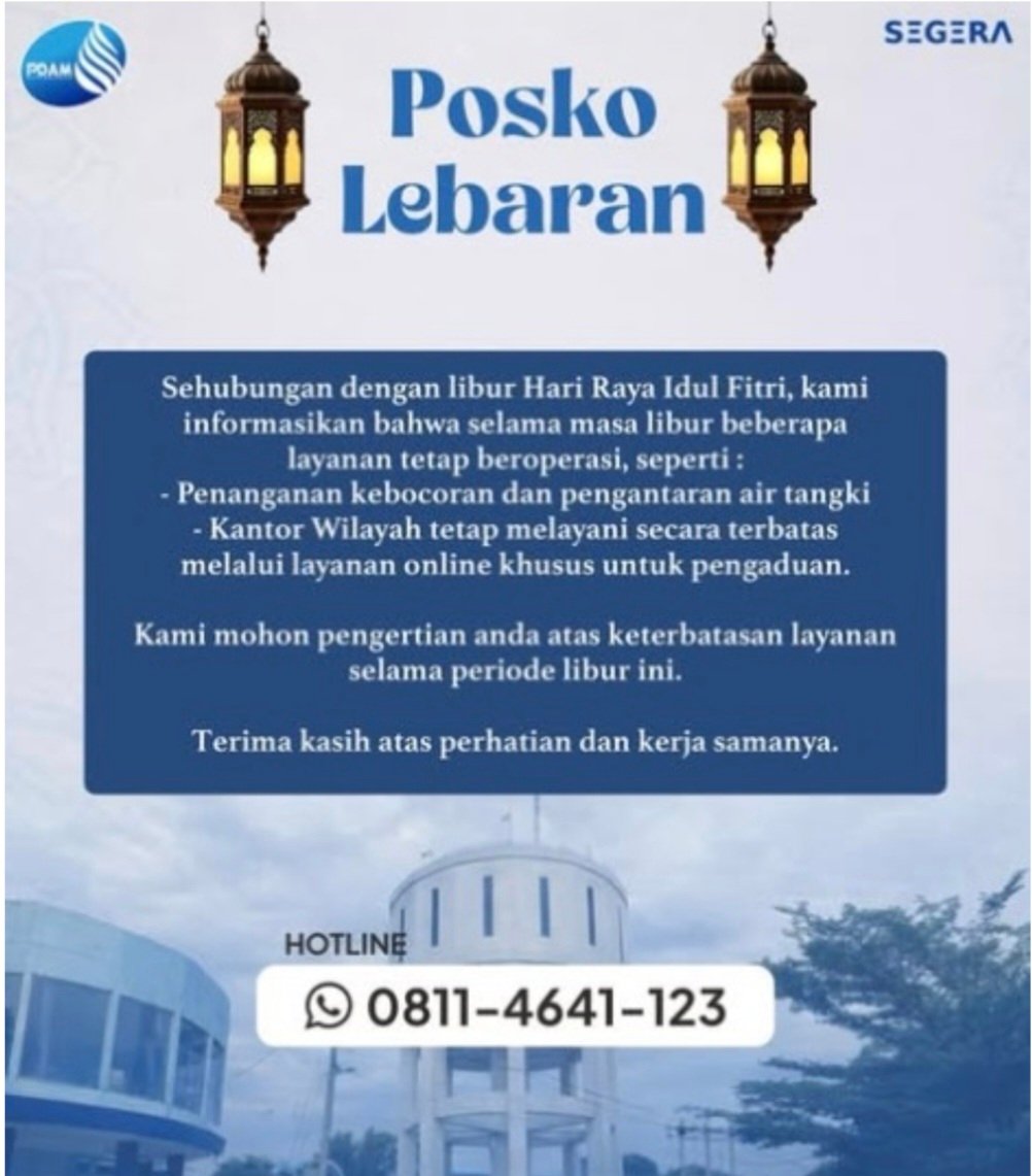 ”Sehubungan dengan libur Hari Raya Idulfitri, kami informasikan bahwa selama masa libur beberapa layanan tetap beroperasi,” jelas Kabag Humas PDAM Makassar, Fazad Azizah, Senin (23/3/2026).