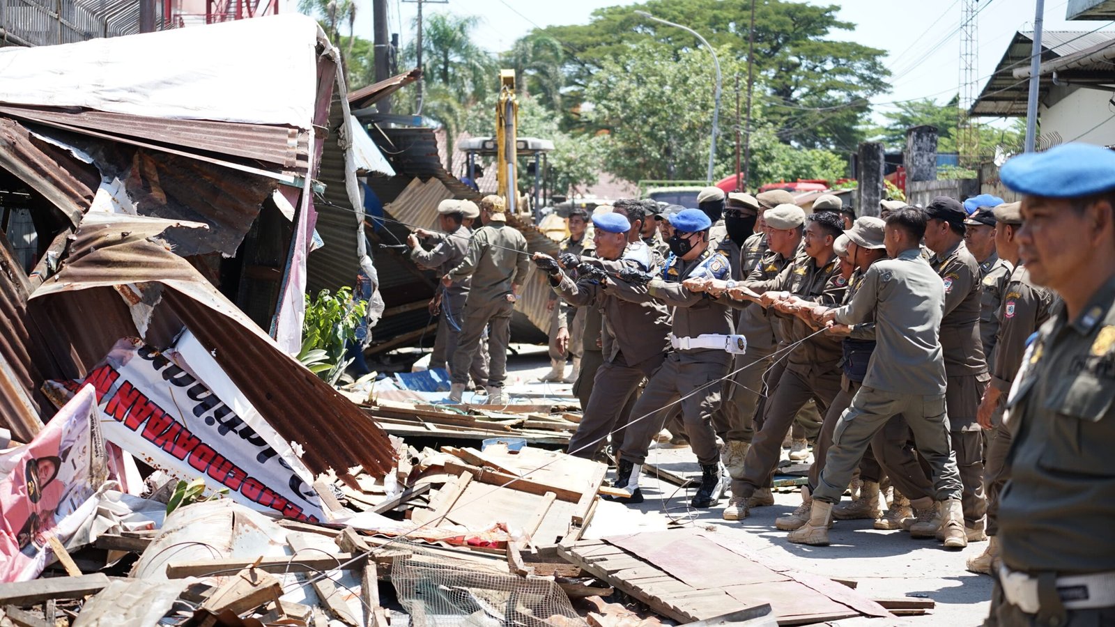 Operasi ini melibatkan tim gabungan dari Satpol PP, unsur TNI, dan Polri. Meski sempat diwarnai dinamika di lapangan, petugas tetap melanjutkan pembongkaran secara bertahap hingga area tersebut bersih dari bangunan liar.
