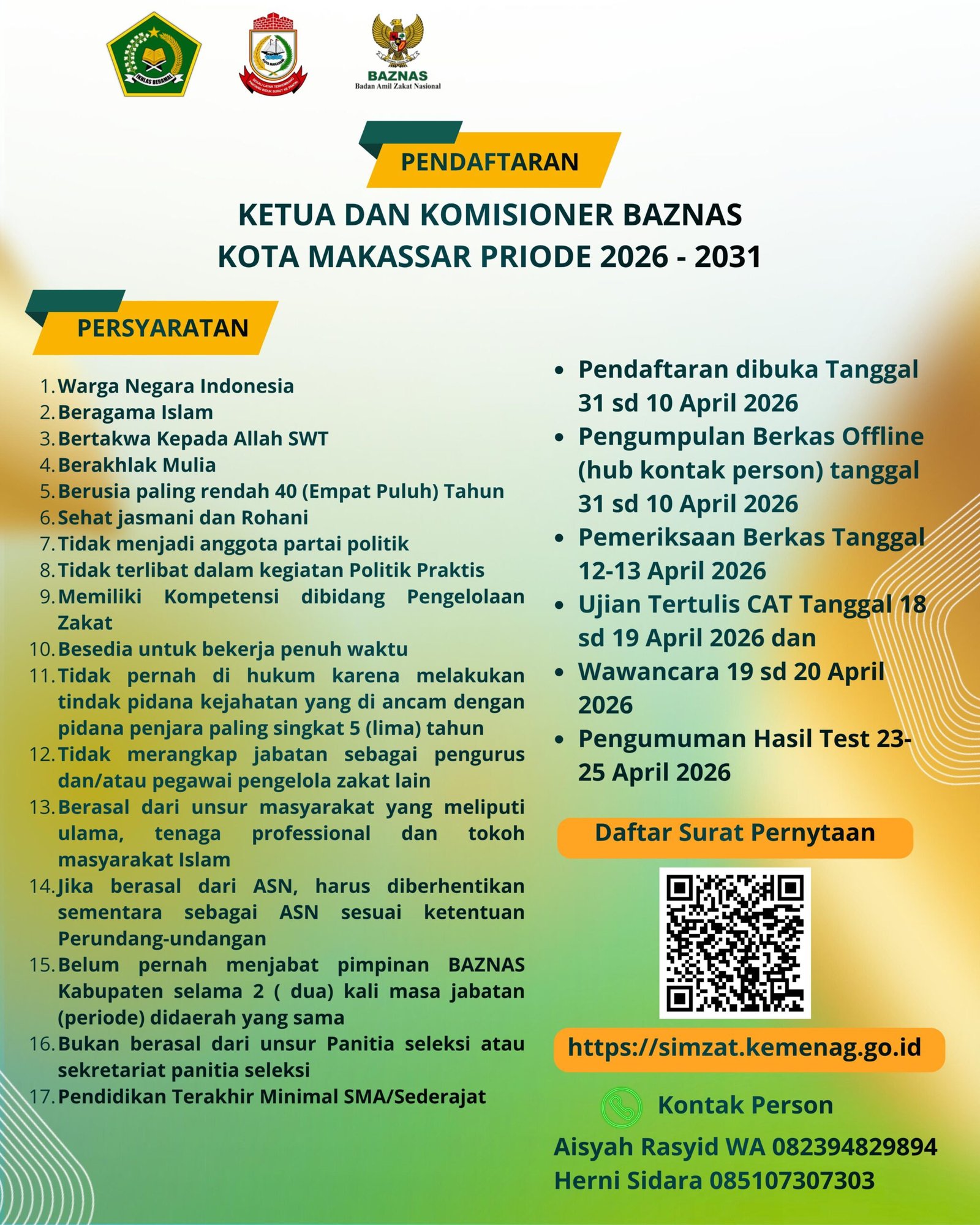 Persyaratan Calon Komisioner BAZNAS Makassar