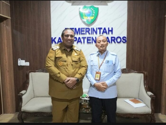 MENITNEWS.COM, MAROS – Bupati Maros, Dr. H.A.S. Chaidir Syam, menerima kunjungan silaturahmi Kepala Kantor Pelayanan Pajak (KPP) Pratama Maros yang baru, Safatul Arief, di Ruang Simbang, Kompleks Kantor Bupati Maros, Rabu (1/4/2026).