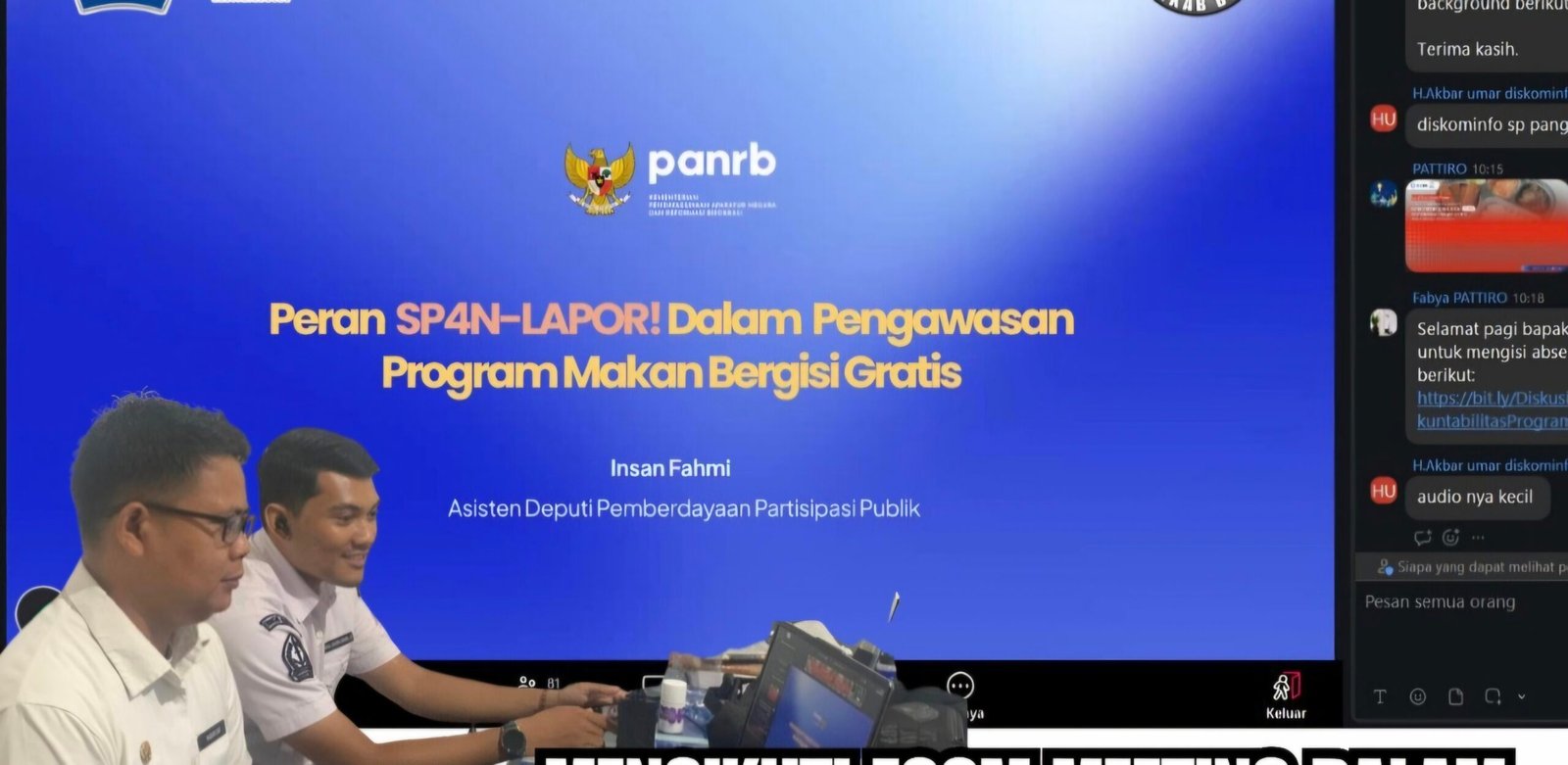 Hal ini dibuktikan dengan keikutsertaan Tim SP4N-LAPOR! Diskominfo Bone dalam Diskusi Publik bertajuk “Peran Strategis SP4N-LAPOR! dalam Merespon Pengaduan MBG” secara daring, Rabu (15/4/2026).