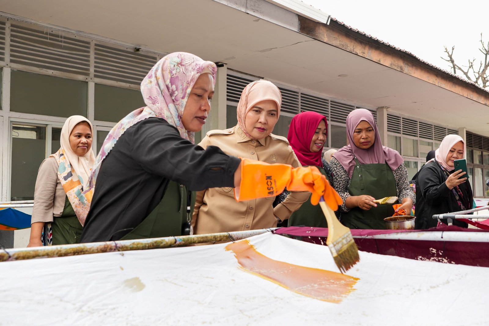 Fokus utama dalam peninjauan ini adalah penguatan peran perempuan melalui peningkatan kapasitas keterampilan teknis. Aliyah Mustika Ilham melihat langsung proses pelatihan batik ciprat dan menjahit yang diikuti oleh 16 peserta dari berbagai latar belakang binaan.