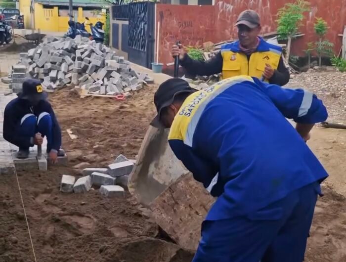 Selain meningkatkan estetika lingkungan, penggunaan paving blok dipilih untuk memastikan daya serap air yang lebih baik guna meminimalisir risiko banjir di area pemukiman warga.