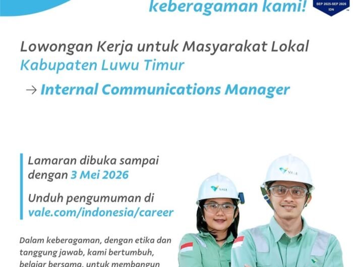 ”Kami mengundang talenta terbaik dari Luwu Timur untuk bergabung dalam perjalanan transformasi kami. Posisi Internal Communications Manager bukan sekadar peran administratif, melainkan penggerak budaya perusahaan dalam menciptakan lingkungan kerja yang inklusif dan kolaboratif,” papar Vanda, Sabtu (25/4/2026).