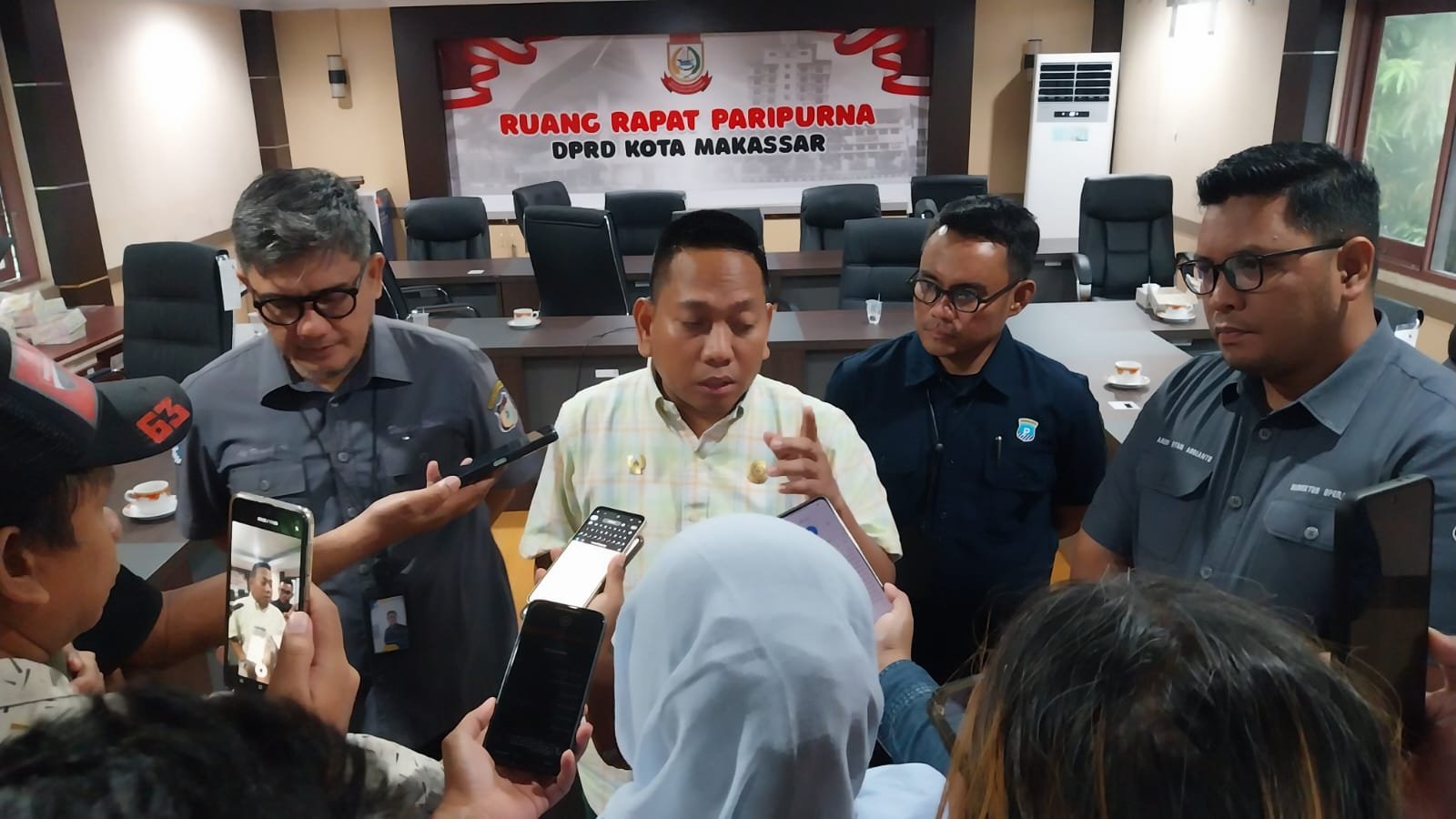 Bersama Perumda Parkir Makassar Raya, legislatif menggelar Rapat Dengar Pendapat (RDP) guna menindaklanjuti temuan pengusaha yang menggunakan lahan parkir tidak sesuai peruntukan di Ruang Paripurna Kantor DPRD Makassar, Senin (27/4/2026).