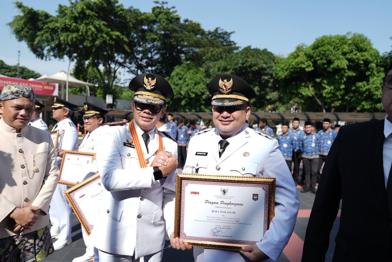Penghargaan tersebut diserahkan langsung oleh Wakil Menteri Dalam Negeri, Bima Arya Sugiarto, kepada Wali Kota Makassar, Munafri Arifuddin, dalam Upacara Peringatan Hari Otonomi Daerah (Otda) ke-XXX di Plaza Kemendagri, Jakarta, Senin (27/4/2026).